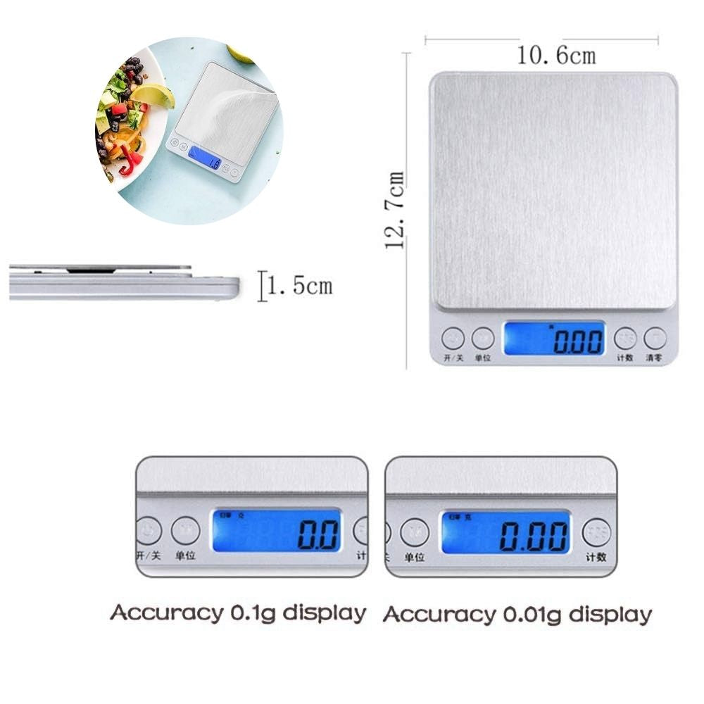 La Mini Bascula Gramera Digital es perfecta para tus necesidades de pesaje. Ofrece una capacidad hasta 3kg, ideal para diversos usos. Su pantalla con luz facilita la lectura en cualquier entorno. Incluye dos bandejas de acrílico de diferentes tamaños, para mayor versatilidad.